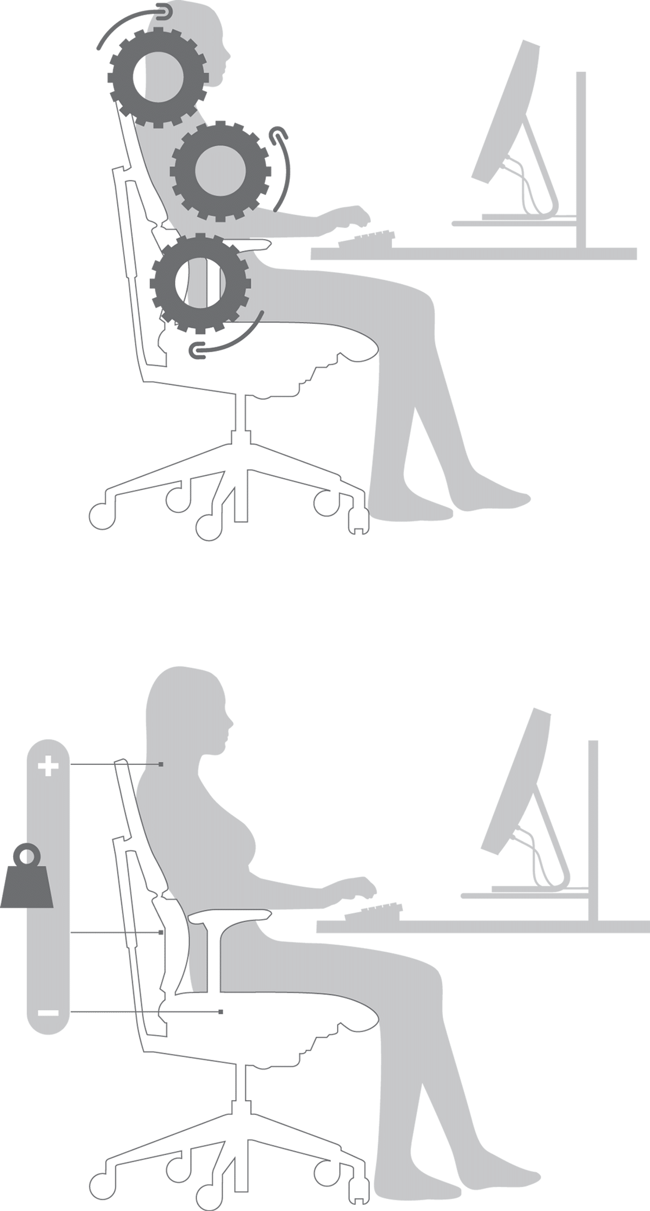 Rückenlehne mit Lumbal-Unterstützung und Härteeinstellung